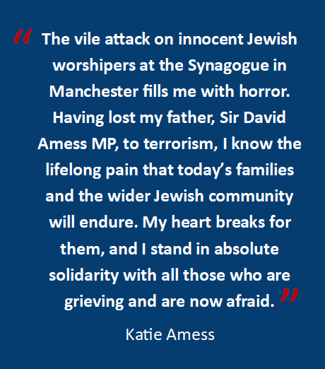 “The vile attack on Jewish worshipers fills us with horror. As people who have been injured, witnessed or bereaved by terror attacks in the past – we know first-hand the immense pain that families will be going through. Our first thoughts as a country must be how we can support those families and their loved ones. We urge the government to immediately activate their support mechanisms and ensure they get all the care they need both now and in the future. We also know from experience that how we respond as a country matters. Terrorists seek to divide our communities.They want us to spread their hatred, to live in fear, and to undermine our collective way of life. Their worst nightmare is that instead of dividing us these attacks pull us closer together.”
